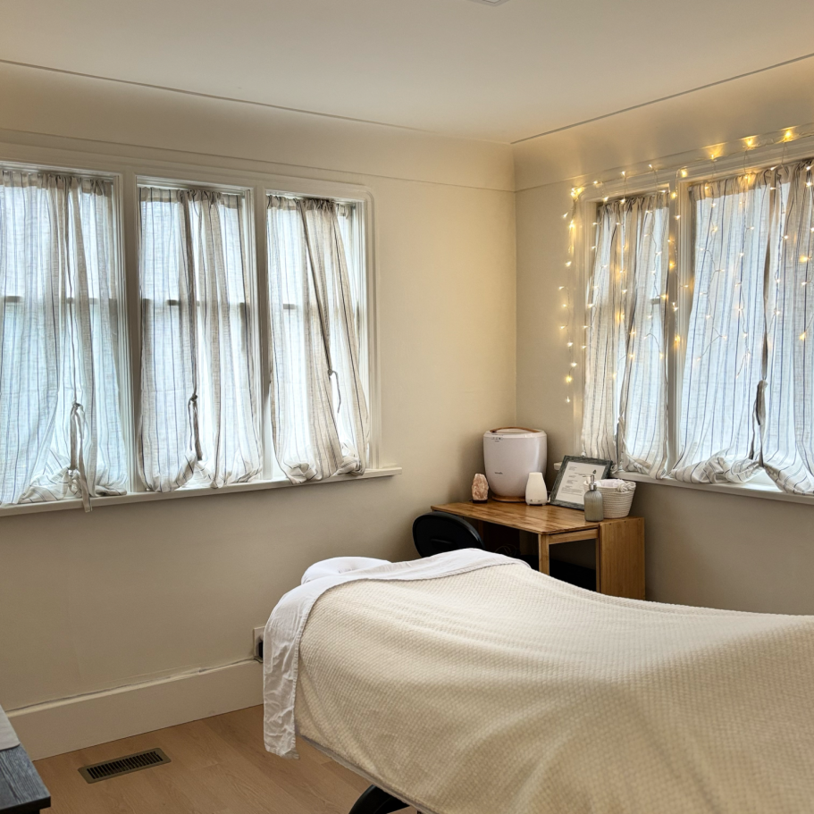 Treatment room for massage therapy and massage wellness services.